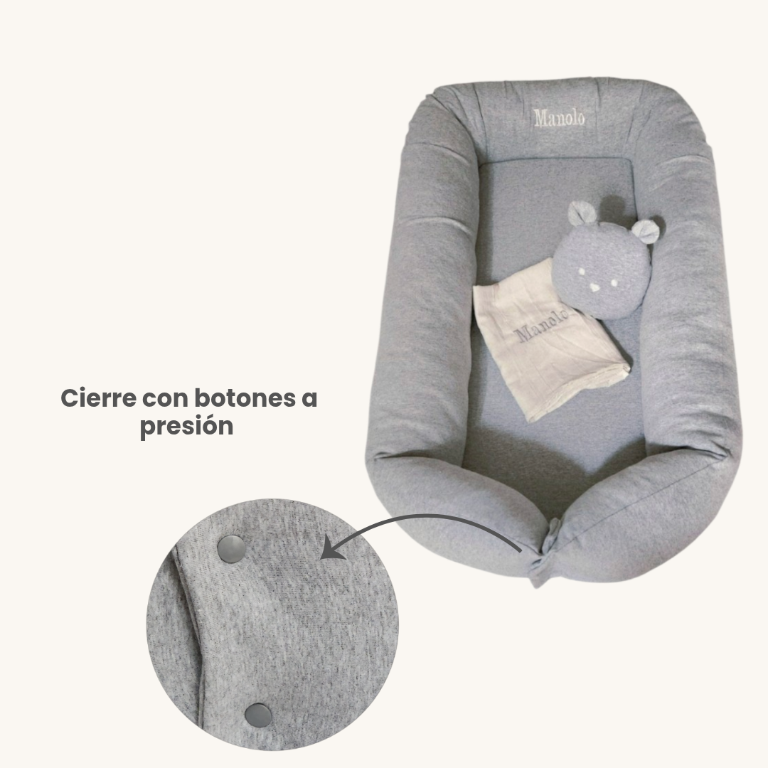 - Medidas totales del nido abrochado: 85 cm largo x 55 cm de ancho